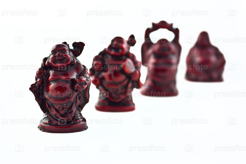 Статуэтки божеств на белом фоне. Малая глубина резкости