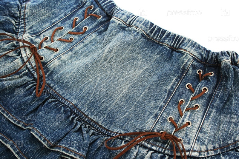 Синяя джинсовая юбка на белом фоне