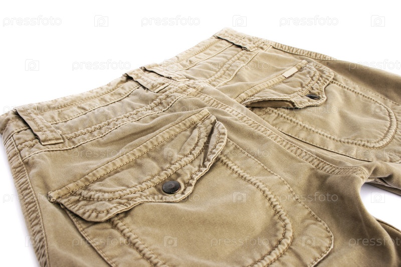 Бежевые джинсы на белом фоне