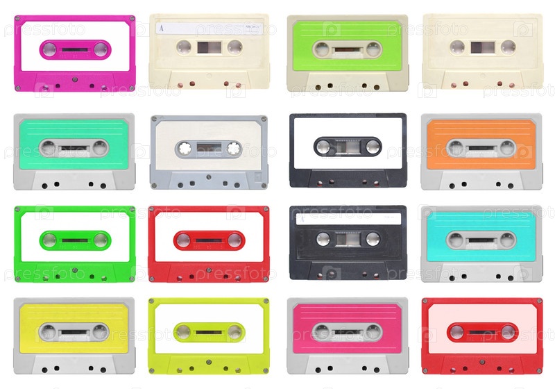 Набор магнитных аудиокассет для записи музыки изолирован на белом фоне