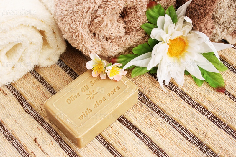Полотенца и оливковое мыло с алоэ вера