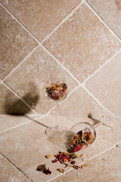 Бокалы, наполненные сухими лепестками цветов