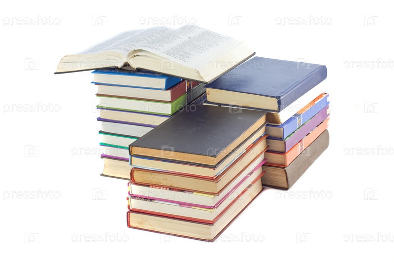 Стопки книг на белом фоне