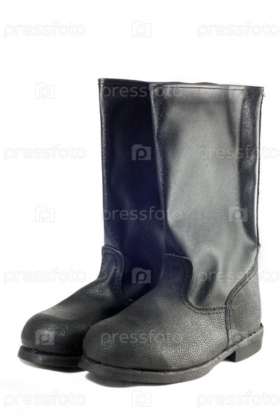 Пара рабочих черных сапог, изолированная на белом фоне