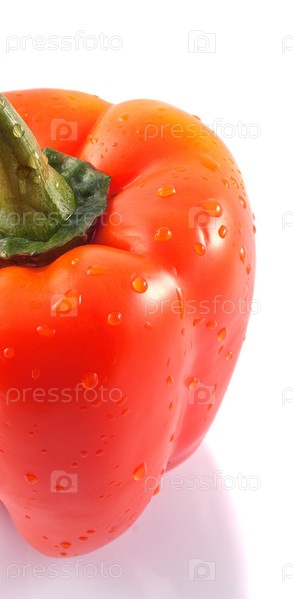 Перец с каплями воды на белом фоне