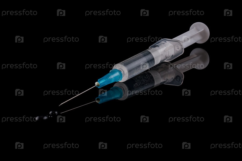 Медицинский шприц на черном фоне