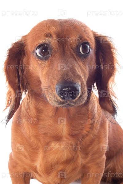 Коричневая такса на белом фоне