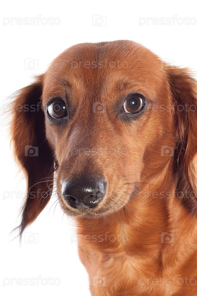 Коричневая такса на белом фоне