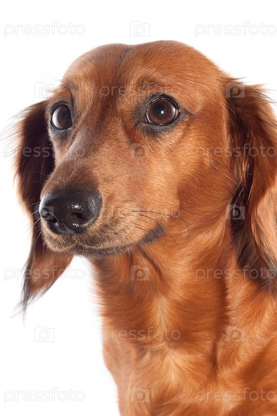 Коричневая такса на белом фоне