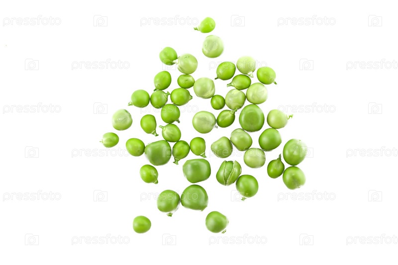 Горсть зеленого горошка на белом фоне