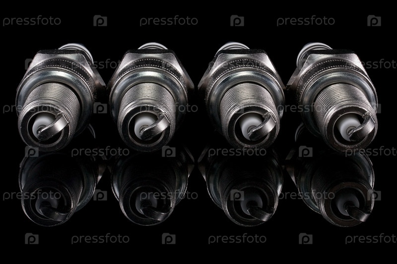 Четыре свечи зажигания на черном фоне