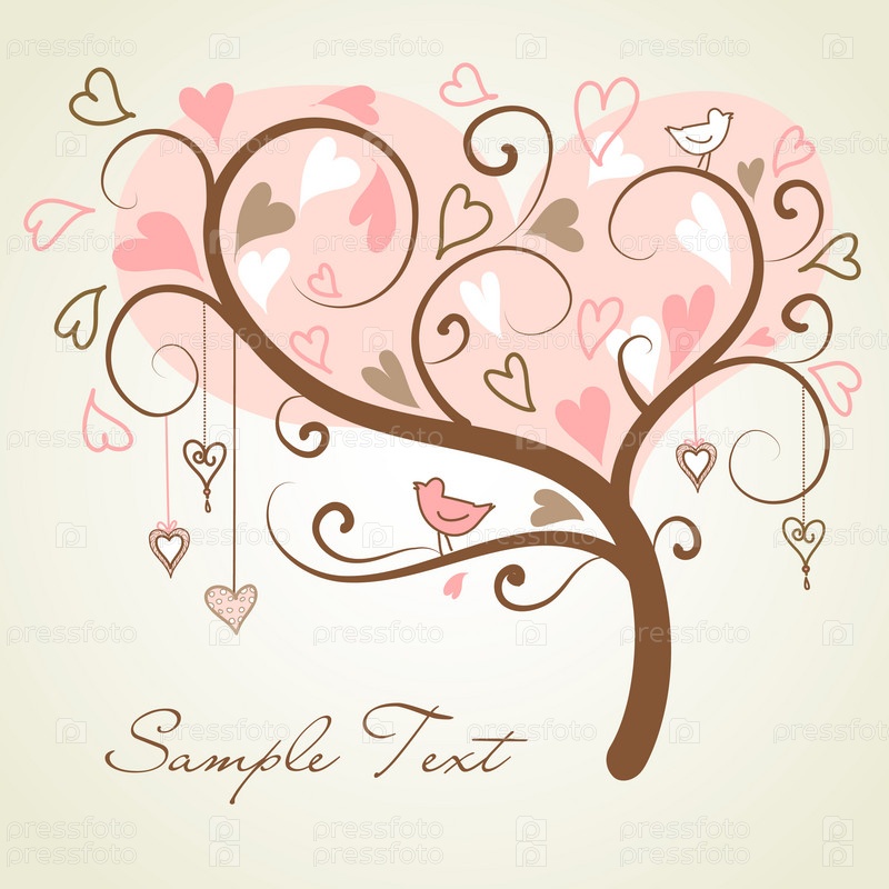 Стилизованное дерево с сердцами и птицами