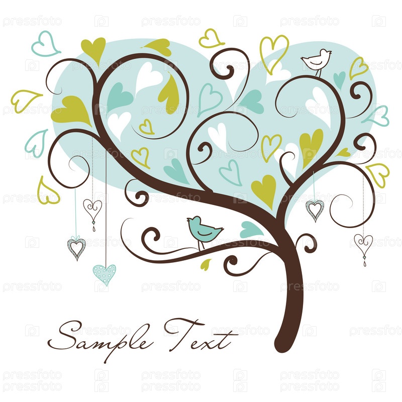 Стилизованное дерево с сердцами и птицами