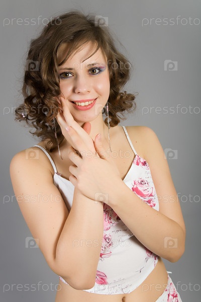 Портрет красивой девушки на сером фоне