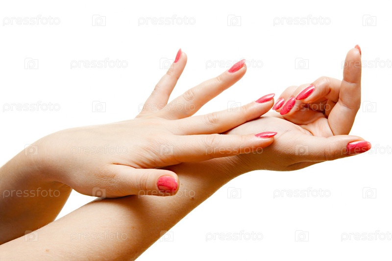 Ухоженные женские руки с маникюром на белом фоне