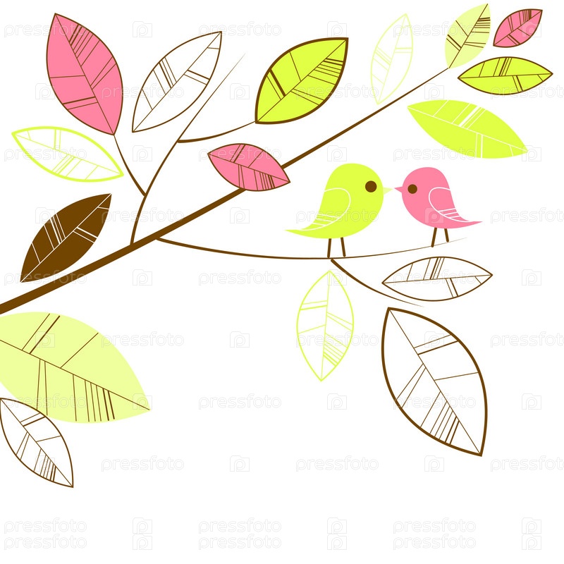 Стилизованный рисунок с птицами на ветке