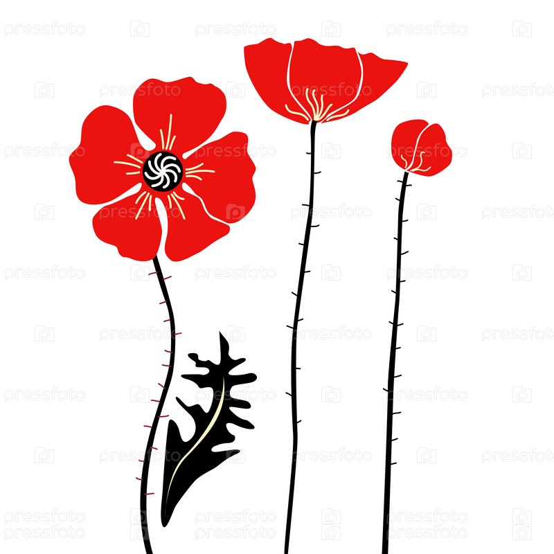 Красные маки на белом фоне