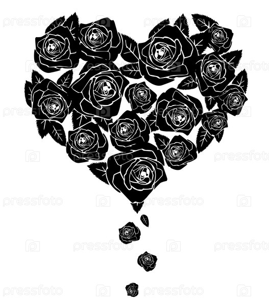 Черные розы в форме сердца