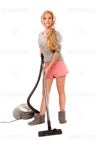 Молодая домохозяйка. Изолирована на белом фоне