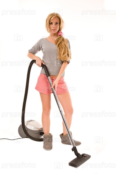 Молодая домохозяйка. Изолирована на белом фоне