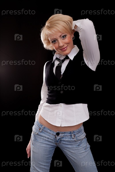 Молодая красивая блондинка на черном фоне