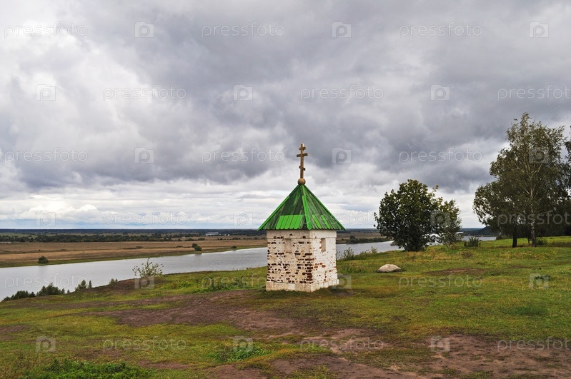 Часовня на берегу Оки, село Константиново, Россия. Дом русского поэта Сергея Есенина