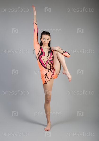 Молодая красивая гимнастка, мастер спорта, на тренировке