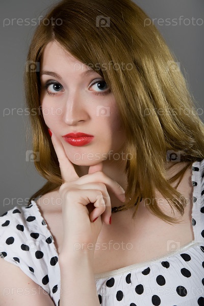 Красивая девушка в платье в горох