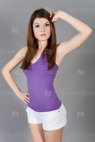 Портрет брюнетки на сером фоне