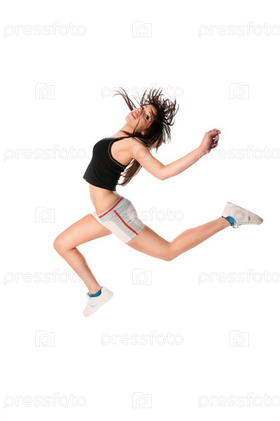 Девушка в высоком прыжке на белом фоне