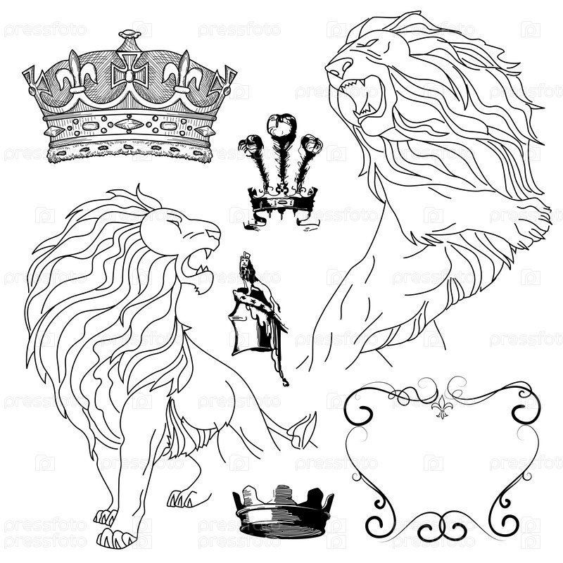Элементы геральдики. Изображение львов и различных корон