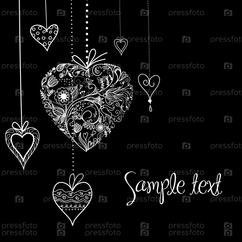 Черные и белые силуэты сердец на Валентинов день