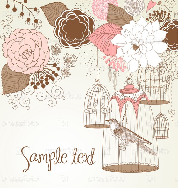 Открытка с птицей в клетке