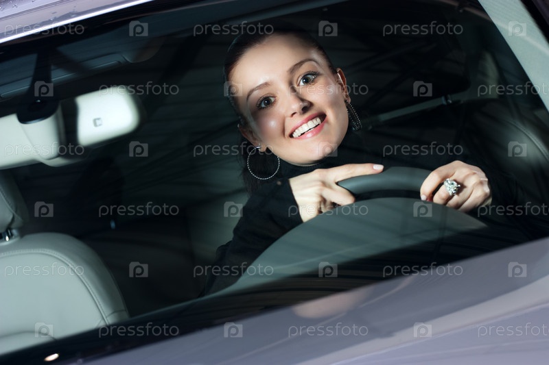 Молодая красивая девушка за рулем автомобиля