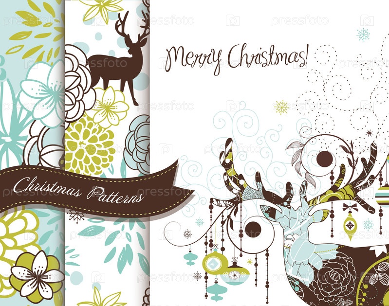 Набор художественных рождественских шаблонов с оленями и цветами