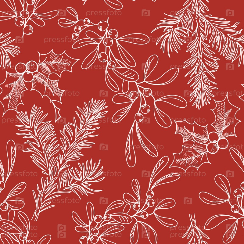 Бесшовный фон с хвоей и остролистом