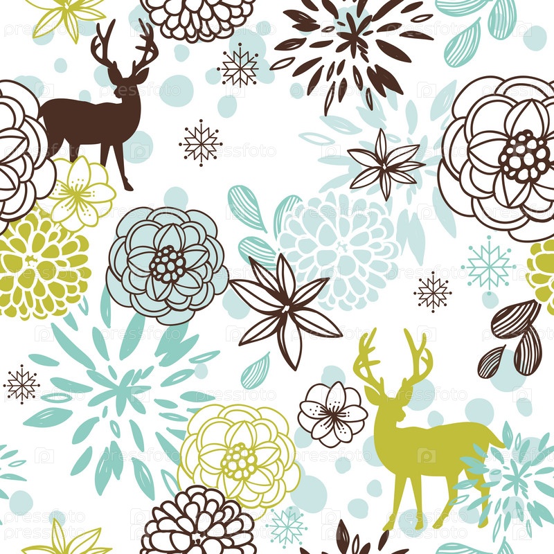 Набор шаблонов с рождественскими оленями и цветами