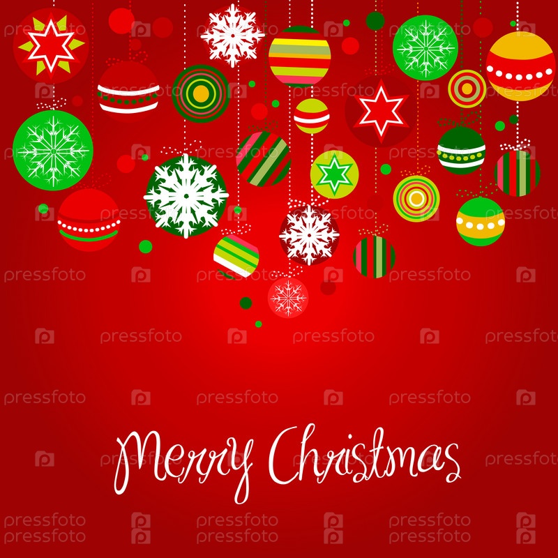 Симпатичная красная рождественская векторная открытка с шарами