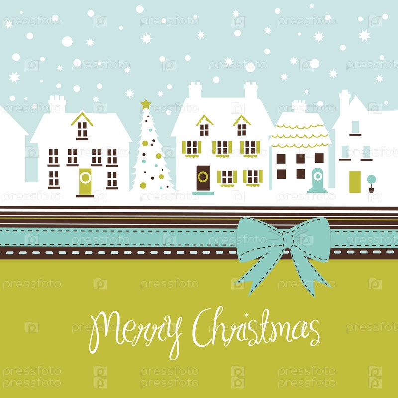 Рождественская открытка с милым зимним городком
