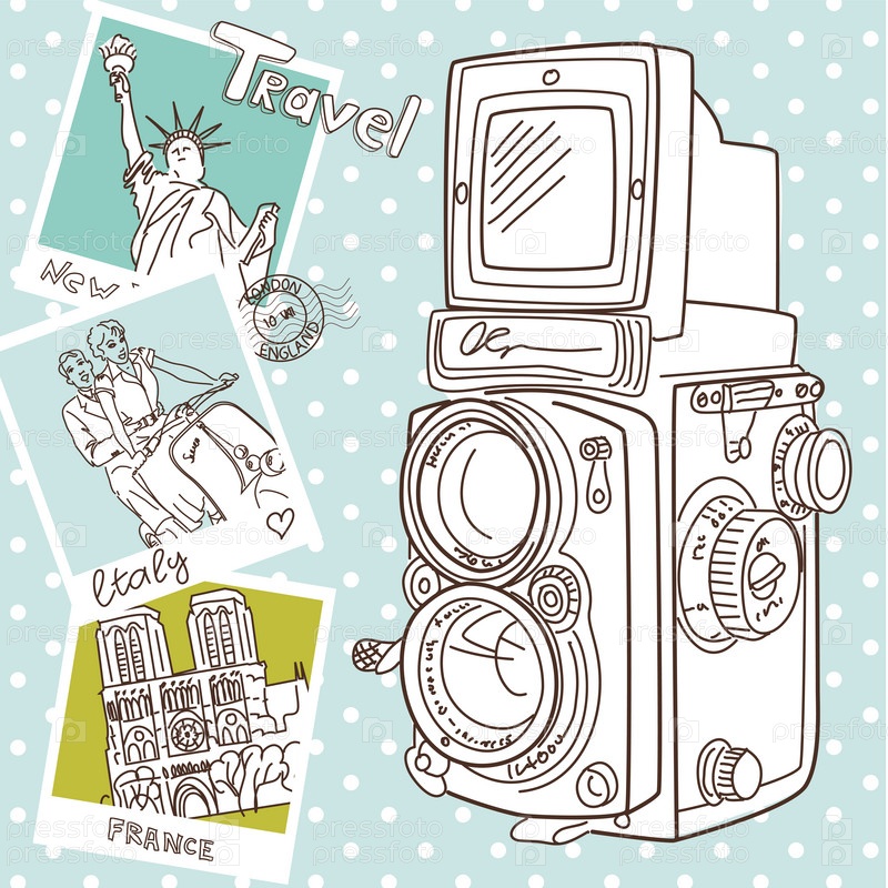 Старинная фотокамера и фотоснимки