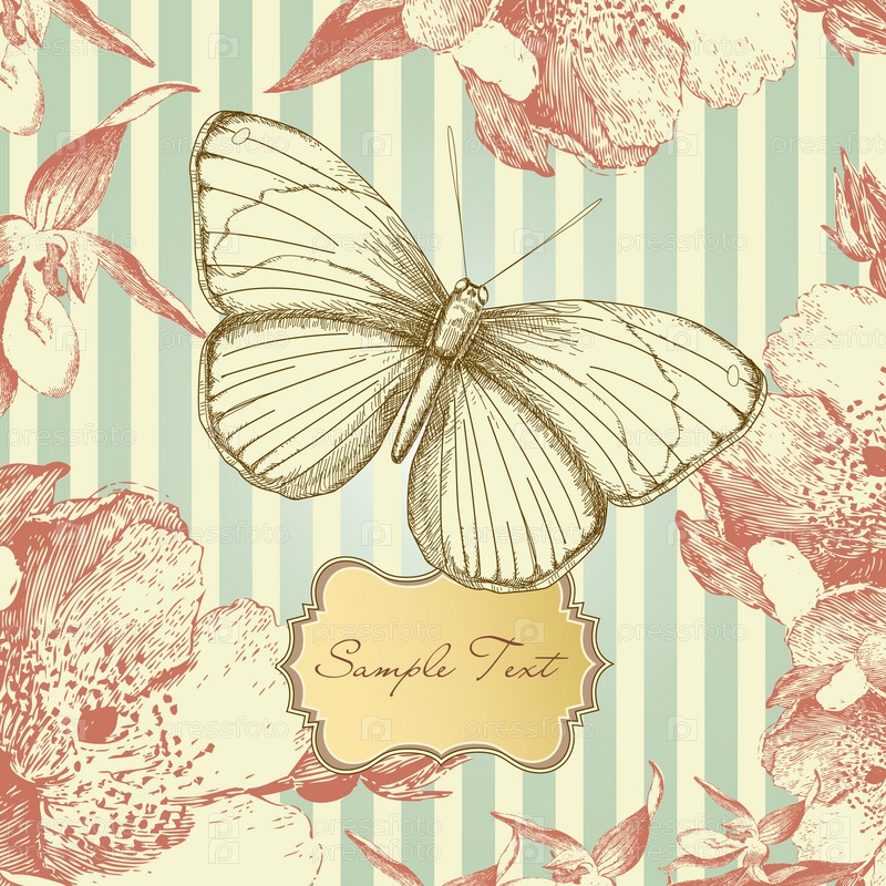 Старинная открытка с бабочкой