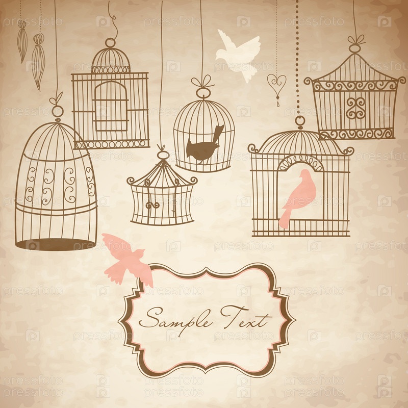 Фон с птицами в клетках