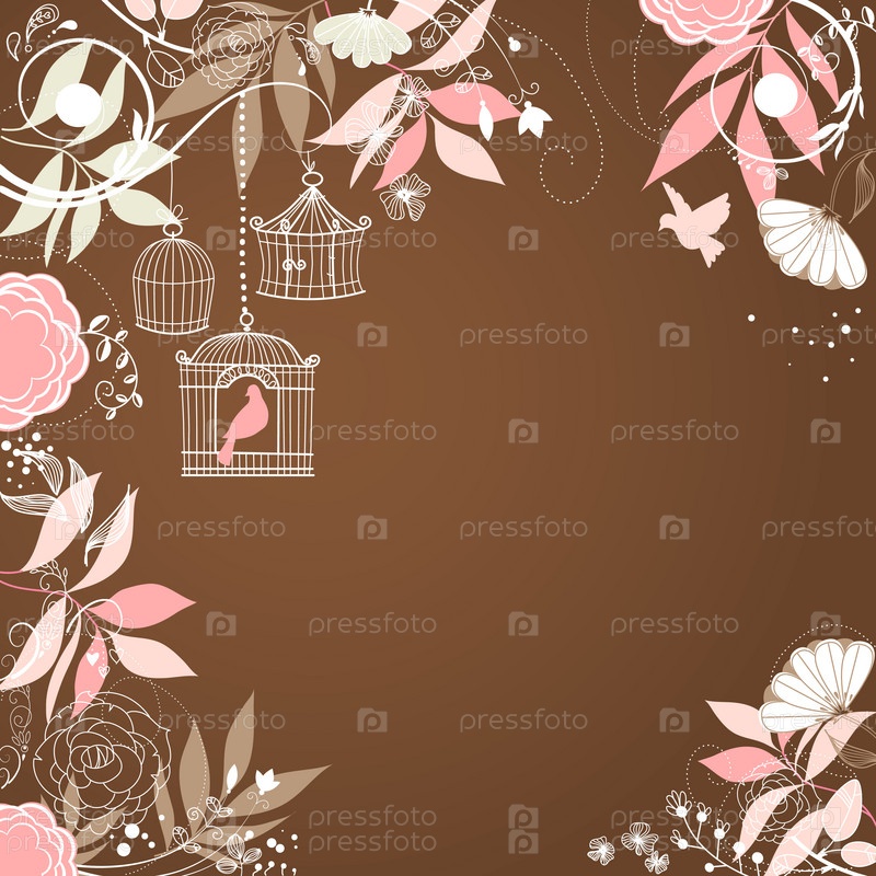 Фон с цветами и птицей в клетке