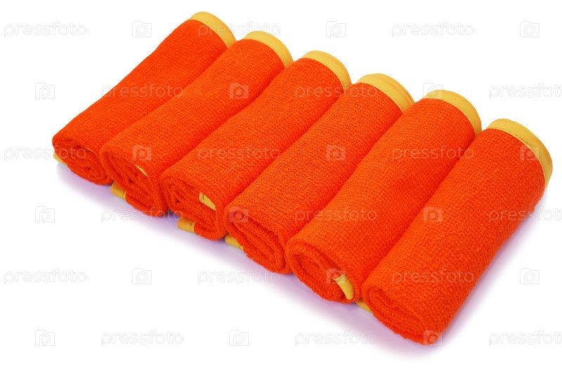 Скрученные полотенца на белом фоне