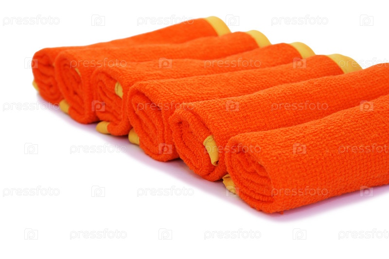 Скрученные полотенца на белом фоне