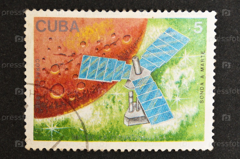 Почтовая марка Кубы 1988 года с изображением космического оборудования