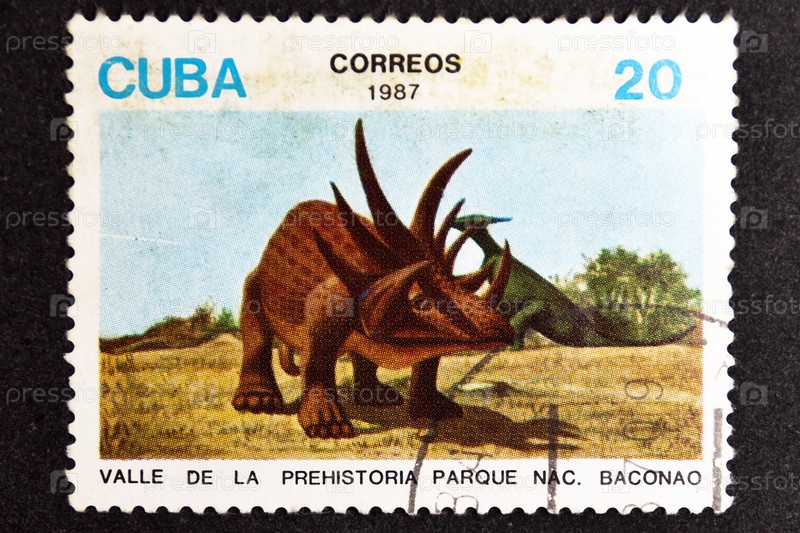 Кубинская марка 1987 года с изображением динозавров