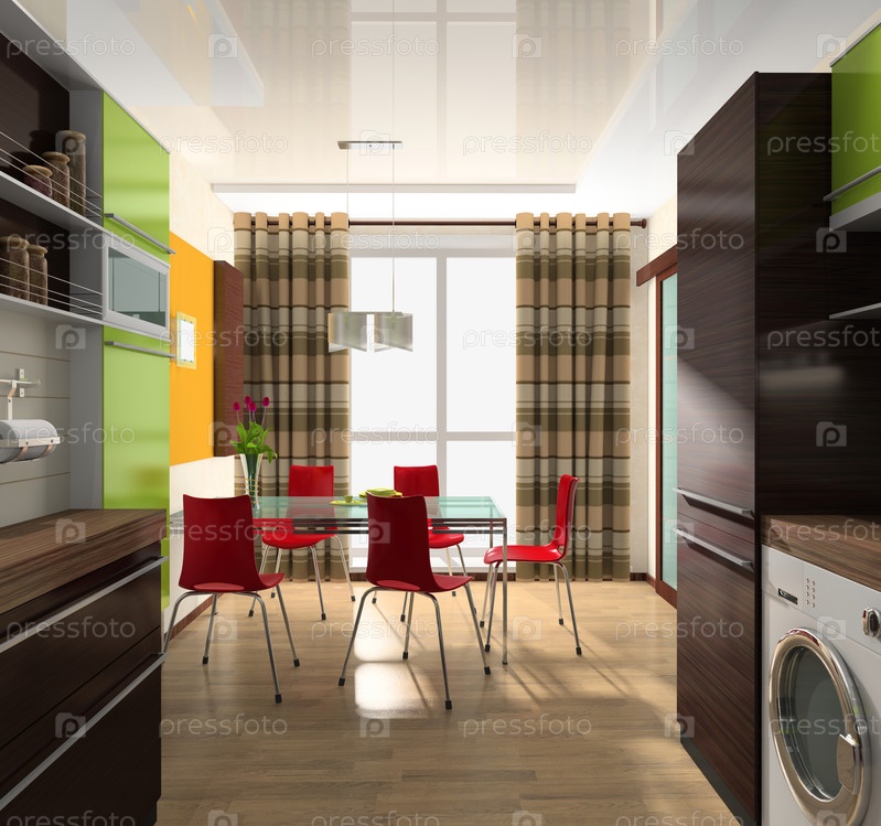 Интерьер для кухни с красными стульями