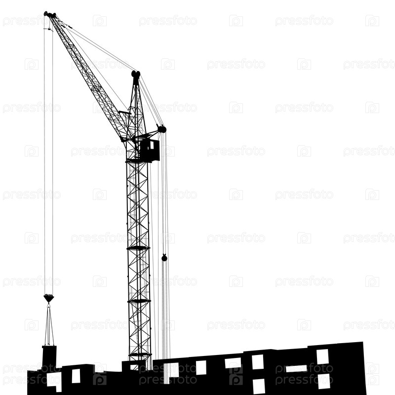 Силуэт строительного крана на белом фоне
