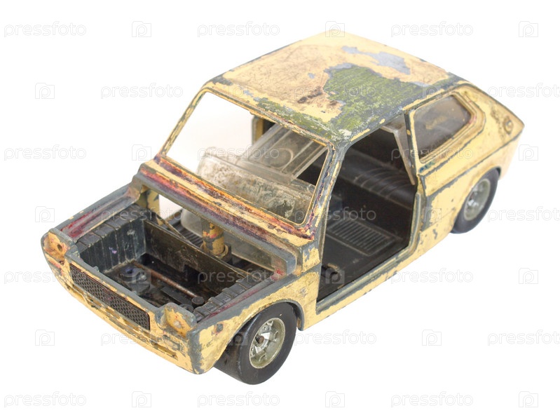 Старый брошенный автомобиль, изолировано на белом фоне